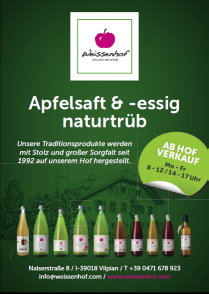 Der Weissenhof in Vilpian ist ein alter Bauernhof, auf dem seit über 700 Jahren Äpfel angebaut werden. Die Produktion von Apfelsaft begann 1984, eher zufällig für den Familienbedarf. Erst waren auch die Nachbarn daran interessiert, dann verschiedene Bars und Hotels in der Umgebung. Heute wird der naturtrübe Apfelsaft über die Landesgrenzen hinaus verkauft. Das Sortiment hat sich um verschiedene Apfel-Fruchtsäfte, Essig und den im Winter beliebten Apfel-Glühmix erweitert. Die Produktionsanlagen wurden verfeinert und der Zeit angepasst. Für den Apfelsaft werden nur handgepflückte Äpfel verwendet, kein Fallobst. Der Saft wird schonend pasteurisiert, nicht filtriert und ist frei von Zusätzen.