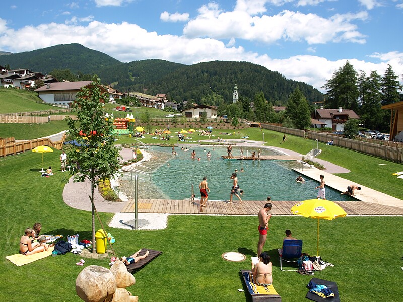 Inmitten im Grünen, mit einem einzigartigen Blick auf die Berge des Höhlensteintales, kannst du dich beim Naturbadesee in Toblach entspannen und dich erholen. Plantsche mit den Kindern oder genieße einfach nur ein Buch in der Stille der Natur mit einem einzigartigen Ausblick auf die Bergwelt oder erhole dich nach einer anstrengenden Wanderung in den Dolomiten-"UNESCO Welterbe" beim Baden.