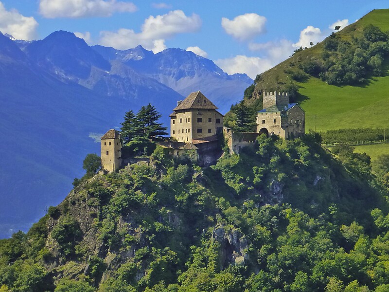 Das mittlelalterliche Schloss Juval befindet sich an einem prähistorischen Kultplatz auf einem Hügel am Eingang des ursprünglichen Schnalstales. Die Burganlage wurde um das Jahr 1278 von Hugo von Montalban erbaut und gelangte im Jahre 1368 in den Besitz der Herren von Starkenberg. 1540 wird das Schloss nach einigen Besitzerwechseln von der Familie Sinkmoser erworben und erreicht in jenen Jahren ihre Blütezeit. Jahrhunderte später, im Jahr 1913, ersteht der holländische Kolonialherr William Rowland die nunmehr baufällige Burg und lässt sie fachgerecht sanieren. Seit 1983 ist Schloss Juval der Sommerwohnsitz von Bergsteigerlegende Reinhold Messner, hier schreibt er Bücher und tüftelt an neuen Ideen. Schloss Juval ist einer von sechs Standorten des MMM Messner Mountain Museum. Auf Schloss Juval hat Reinhold Messner mehrere Kunstsammlungen untergebracht. Sehenswert ist sowohl die umfangreiche Tibetika-Sammlung, als auch die Bergbildergalerie und die Maskensammlung mit Exponaten aus fünf Kontinenten. Auch Fresken aus der Epoche der Renaissance gibt es auf Schloss Juval zu bestaunen. Rund um Schloss Juval betreibt Reinhold Messner einen Bergtierpark sowie eine kleine Landwirtschaft mit Weinbau. Das an Schloss Juval angeschlossene Weingut „Unterortl“, der Biohof „Oberortl“ und der „Schlosswirt“ sind Teil eines Gesamtkonzeptes, das geschaffen wurde, um diese kleinräumige Südtiroler Kulturlandschaft zu beleben und zu erhalten.