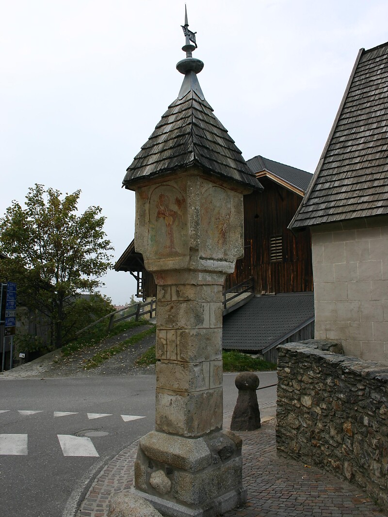 In Laion village, next to the Maria Einsiedel chapel, there is a wayside shrine that dates back to the 17th century. In the niches of the wayside shrine are representations such as a crucifixion group, two holy warriors, St. John and St. Margaret and the visit of Mary to Elizabeth.